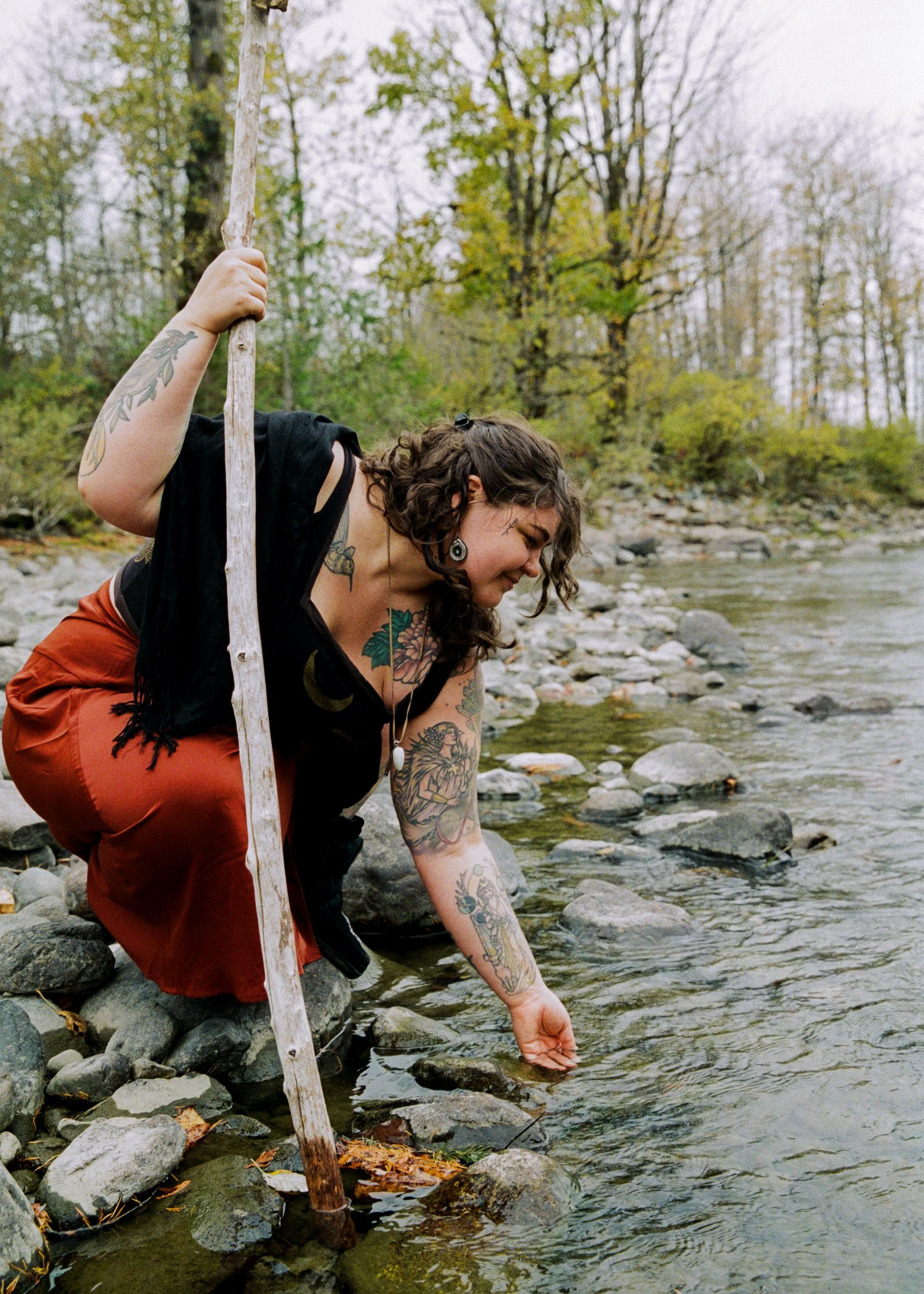 I am Espen Artio! (they/them) I am a folk healer and animist. I work within folk traditions that I like to broadly categorize as embodied, ecological witchcraft. I am a human that has dealt extensively with trauma, CPTSD, and various forms of abuse in myself as well as in clients over the last 6 years of client work. My experience of trauma impacted my ability to connect deeply with myself and the world around me…and so I became quite hungry for moments, experiences, and practices that brought me to presence. I found my path alongside the plants of the PNW, who taught me so much about being here now. I work with spirits, ancestors, and the land as the foundational holders of healing and wisdom. I have trained in witchcraft and healing, herbalism, permaculture, and liberation work. I care deeply for supporting anti-oppression work anywhere and everywhere, and where I feel I do the most good is within the framework of spiritual practice. I seek to support folks in creating liberatory spiritual lives that both address collective systems of harm and uplift frameworks of liberation & healing, as well as actively healing ourselves from the scars of religious and spiritual trauma, and the severance many of us feel from ourselves and the land in this late-stage capitalist world. If you’d like to learn more about me, read along here or visit my instagram @tendingthemystery